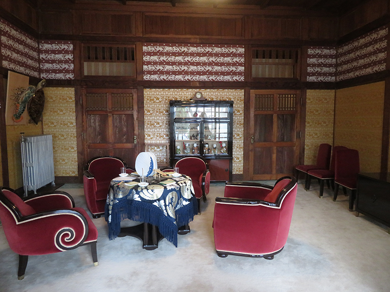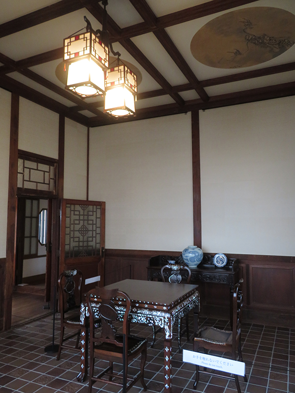 床の敷瓦や天井画、螺鈿細工のテーブルなど中国風の意匠が美しい応接室、荻窪会議が行われた歴史の舞台でもある客間、そして、近衛文麿が自決した当時の姿を今もとどめる書斎――。教科書の中にあった出来事が目の前にある、本物の凄みを感じる空間だ。